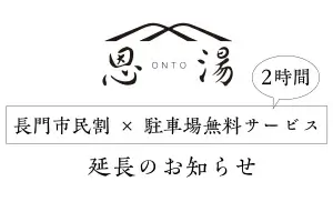 現在恩湯では、18時以降に「長門市民割」をご利用のお客様を対象に、2時間分の駐車場サービス券をお渡ししております。